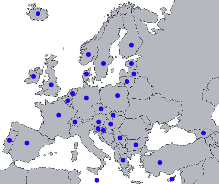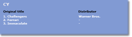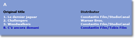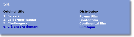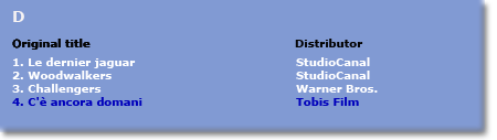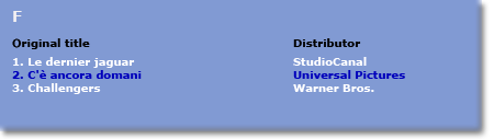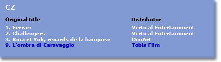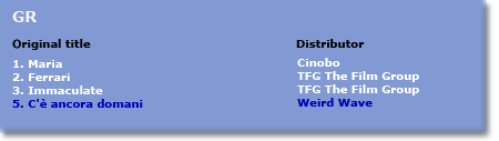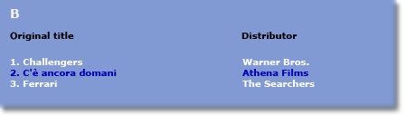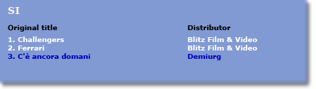 Click on the coloured buttons in the map and you will obtain the top three Italian films as well as - in blue - the position of the first