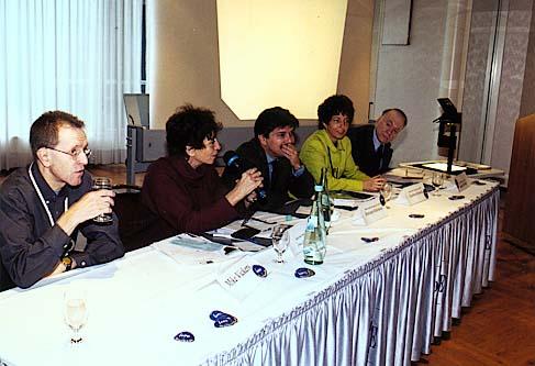 Palace Hotel, 14 February 1999 Presentation of the European Cinema Yearbook - 1998 edition From left to right: Mike Vickers, MEDIA Salles Vice-President, Luciana Castellina, President of Agenzia Italia, Romano Fattorossi, MEDIA Salles President, Elisabetta Brunella, MEDIA Salles Secretary General, Joachim Ph. Wolff, scientific adviser for the European Cinema Yearbook |
