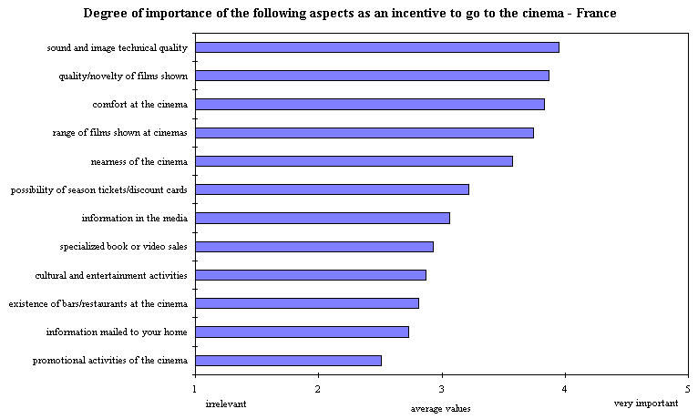Degree of importance of the following aspects as an incentive to go to the cinema