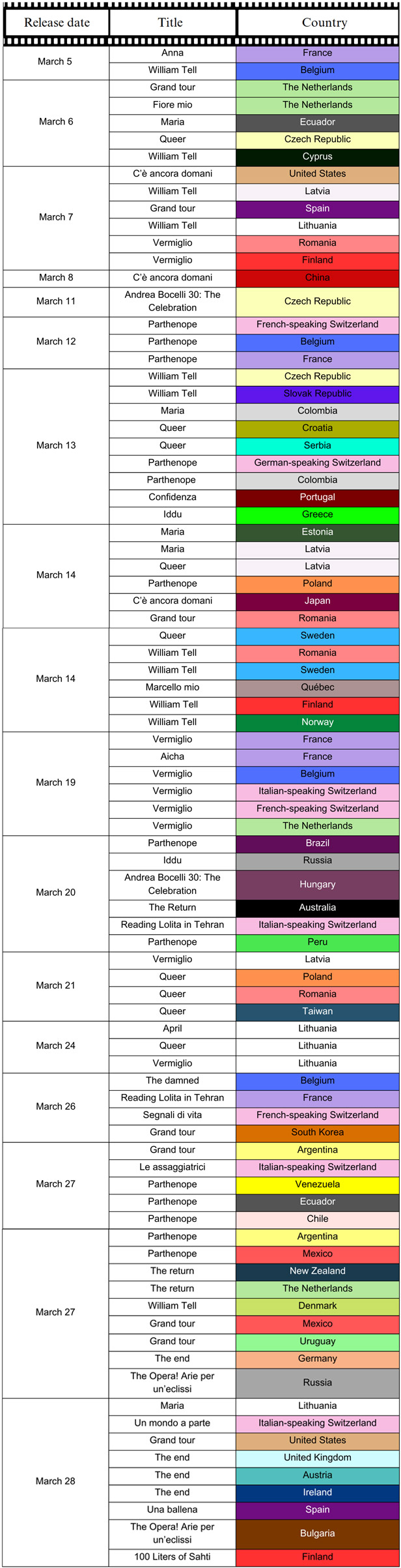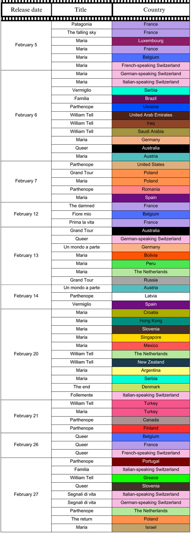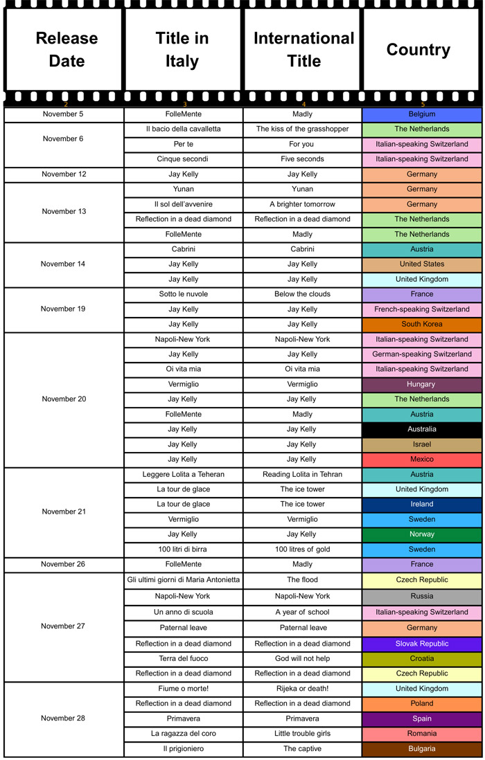 Italian Films: When and where 2025 (by month) "Last update: 07 January 2026 " December 2025