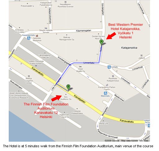 We kindly inform all the participants that the course participation fee includes bed&breakfast accommodation for 4 nights at the Best Western Premier Hotel Katajanokka in Helsinki. If you would like MEDIA Salles to book for you a room at the Best Western Premier Hotel Katajanokka for extra nights, please send an email to infocinema@mediasalles.it together with your credit card details (type of card, number of card, expiry date, exact name of the card holder). MEDIA Salles cannot guarantee room availability. Please note that the hotel is fully booked for the night of 16 February 2010. When checking in, all the participants will be asked to leave a credit card number where to charge all extra expenses, not covered by MEDIA Salles. The usual check in time at the Best Western